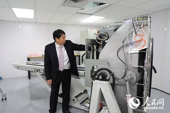明峰醫(yī)療董事會(huì)主席王瑤法介紹在美國(guó)工廠組裝的CT產(chǎn)品