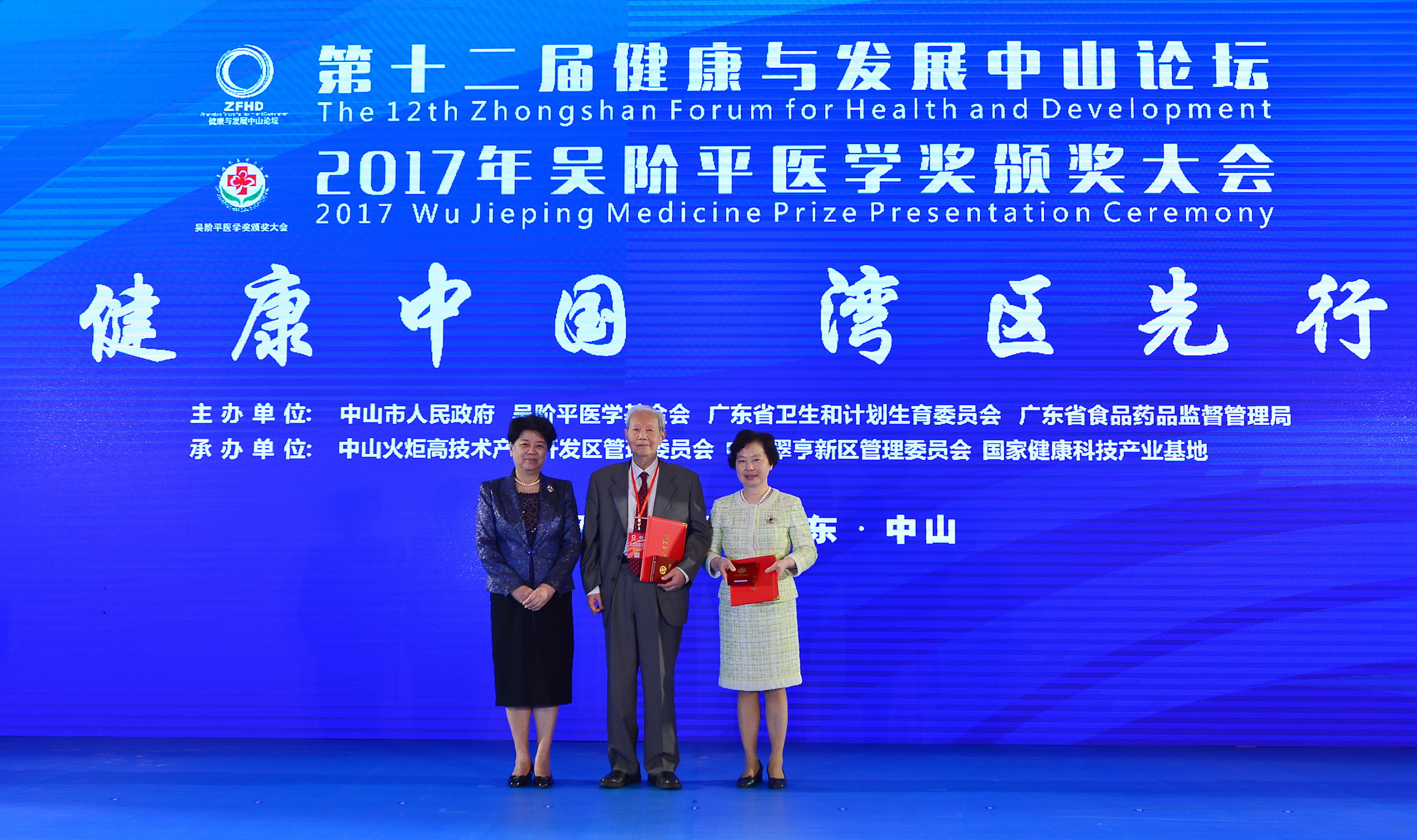 第十二屆健康與發(fā)展中山論壇、2017年吳階平醫(yī)學(xué)獎(jiǎng)?lì)C獎(jiǎng)大會(huì)于11月9-10日在中山市希爾頓酒店隆重舉行。原國務(wù)委員、第十一屆全國人大常委會(huì)副委員長陳至立、廣東省人大常委會(huì)副主任陳小川、健康與發(fā)展中山論壇榮譽(yù)顧問、原衛(wèi)生部副部長朱慶生、健康與發(fā)展中山論壇秘書長、國家食品藥品監(jiān)督管理局原副局長任德權(quán)、中山市委書記、市人大常委會(huì)主任陳旭東、中山市委副書記、市長焦蘭生、國家衛(wèi)生計(jì)生委辦公廳原巡視員石海龍、國家衛(wèi)生計(jì)生委醫(yī)政醫(yī)管局副局長郭燕紅、廣東省食品藥品監(jiān)督管理局巡視員陳德偉、廣東省衛(wèi)生和計(jì)劃生育委員會(huì)副主任陳義平、廣東省經(jīng)濟(jì)和信息化委員會(huì)副主任王月琴、中國可持續(xù)發(fā)展研究會(huì)名譽(yù)理事長、科技部社會(huì)發(fā)展司原司長甘師俊、國家發(fā)改委學(xué)術(shù)委員會(huì)研究員、中國國際經(jīng)濟(jì)交流中心首席研究員張燕生、科技部火炬高技術(shù)產(chǎn)業(yè)開發(fā)中心正局級(jí)調(diào)研員修小平、市人大常委會(huì)副主任唐穎、中山市委常委、火炬開發(fā)區(qū)黨工委書記、翠亨新區(qū)黨工委書記侯奕斌、中山市副市長徐小莉、中山市副市長袁永康等領(lǐng)導(dǎo)出席大會(huì)。