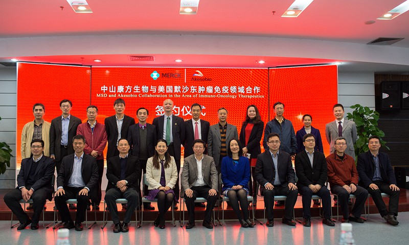 3月2日,中山康方生物有限公司董事長夏瑜博士和從美國總部專程前來的默沙東全球高級副總裁Xu Yuan博士就雙方在腫瘤免疫領域開展合作進行簽約儀式,市委常委、常務副市長謝中凡、火炬開發(fā)區(qū)管委會主任招鴻、中山市科技局局長尹明、火炬開發(fā)區(qū)總經(jīng)濟師梁兆華、國家健康基地副總經(jīng)理余從洪等共同見證簽約儀式。